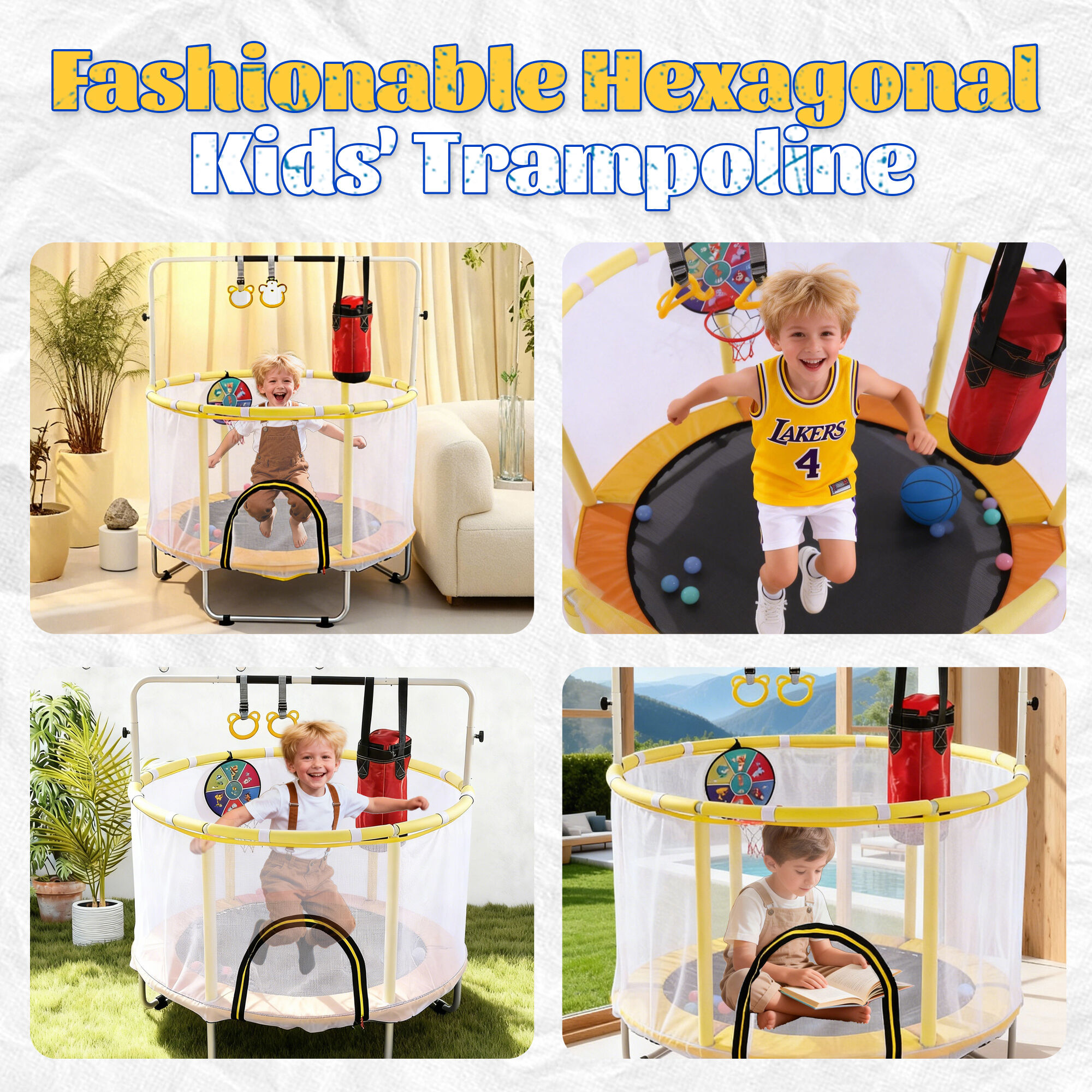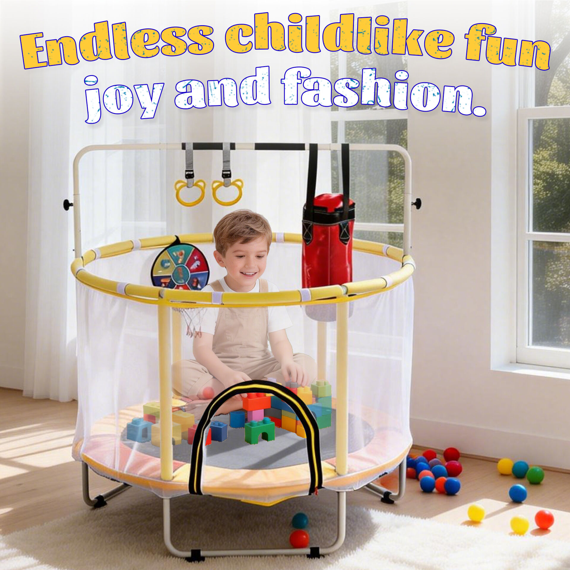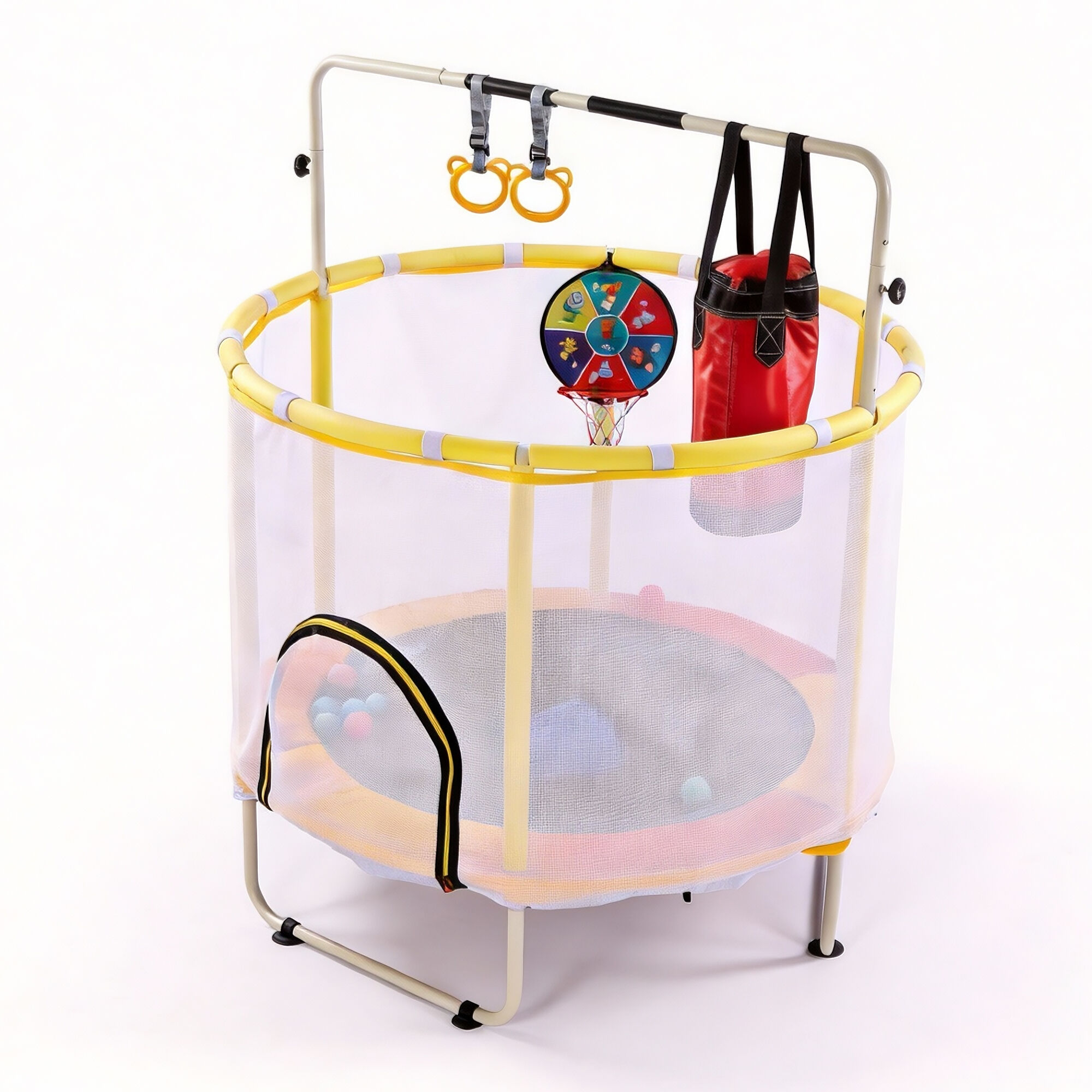 - дитячий батут із мережею та мавпячою перекладиною